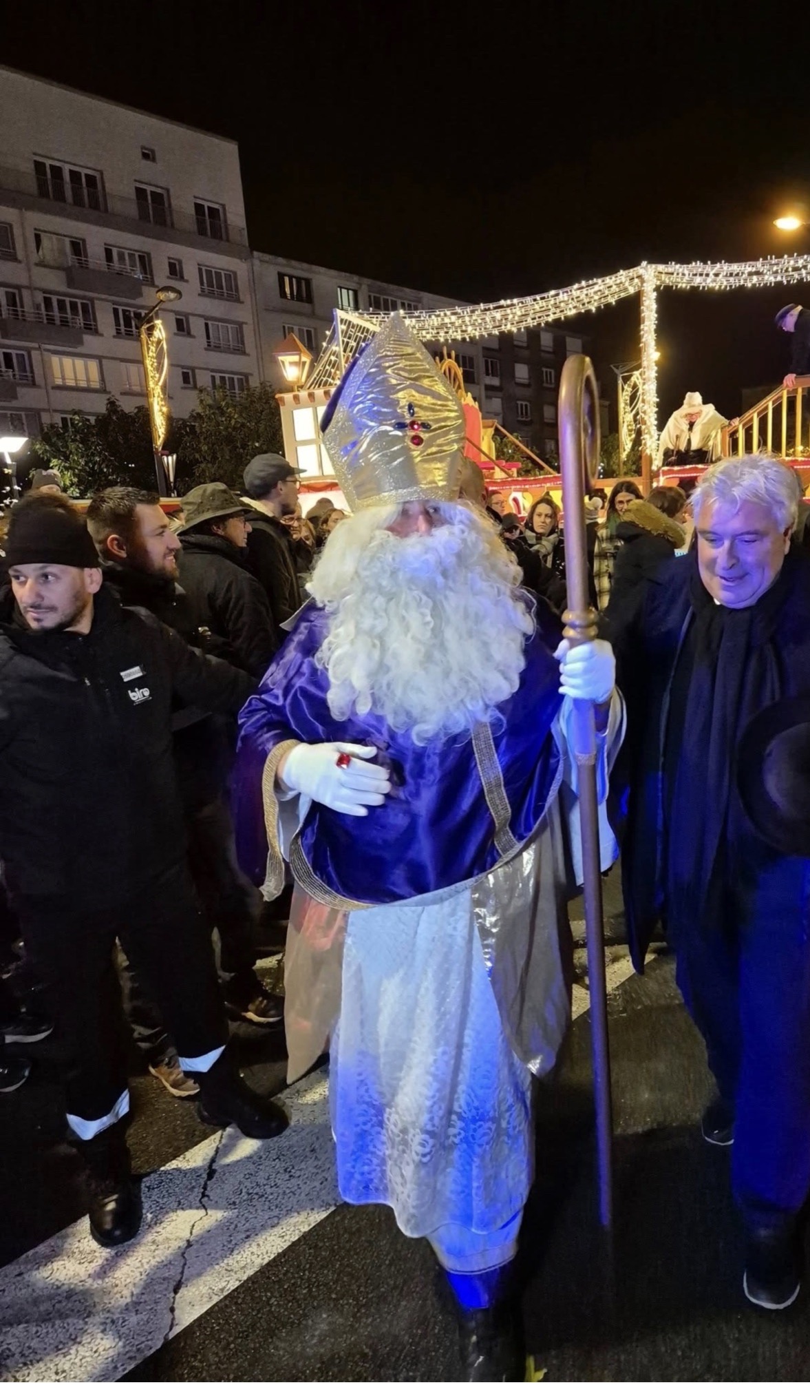 Précision: Saint Nicolas est au centre, le maire de Boulogne, Frédéric Cuvillier, est bien à droite… Sur la photo!