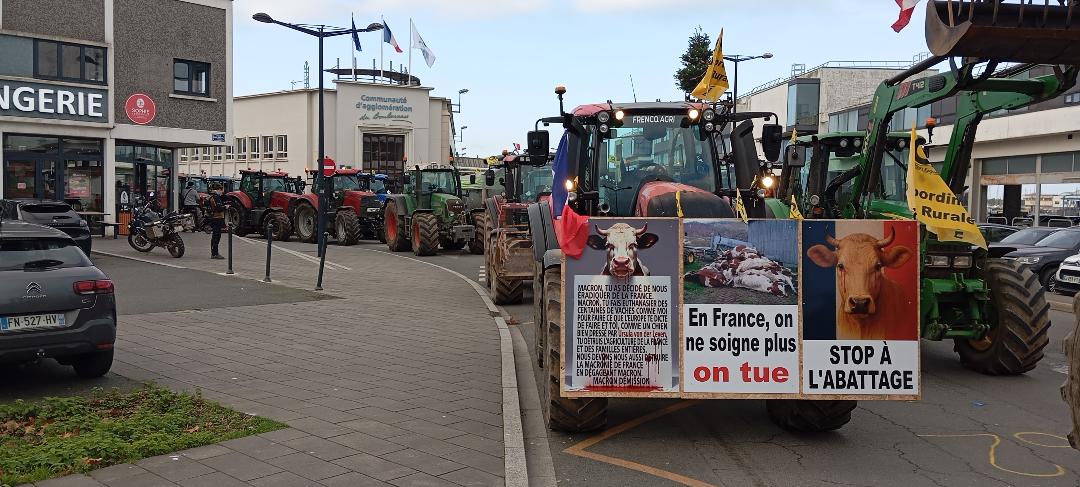 Après avoir déjeuné devant la Communauté d'Agglo, les agriculteurs sont allés occuper le haut de la Grand'rue, face à la Sous-Préfecture.
