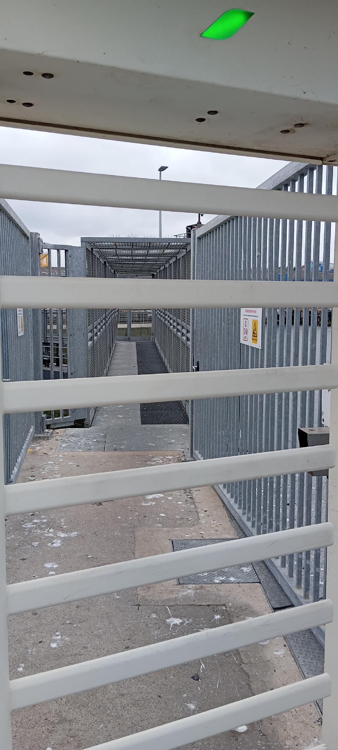 Non, il ne s'agit pas de l'entrée d'une prison haute sécurité, façon Darmalin, mais de l'accès à une passerelle destinée à enjamber le bassin Loubet, via l'écluse. Cette passerelle est censée offrir un raccourci aux gens qui travaillent du côté du quai de l'Amiral Huguet.