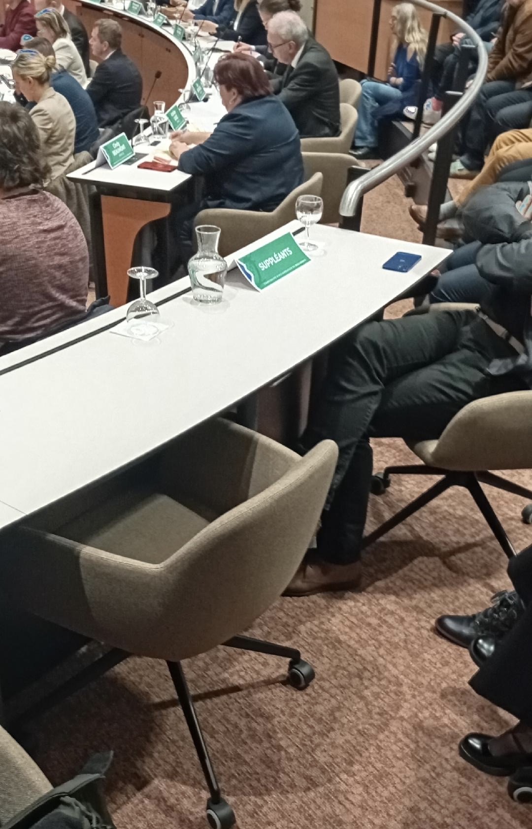 Quand j'ai quitté la salle une heure plus tard, la station debout fatiguant mes vieilles jambes, la chaise en bout de table de presse était toujours inoccupée comme le prouve la photo ci-dessous: