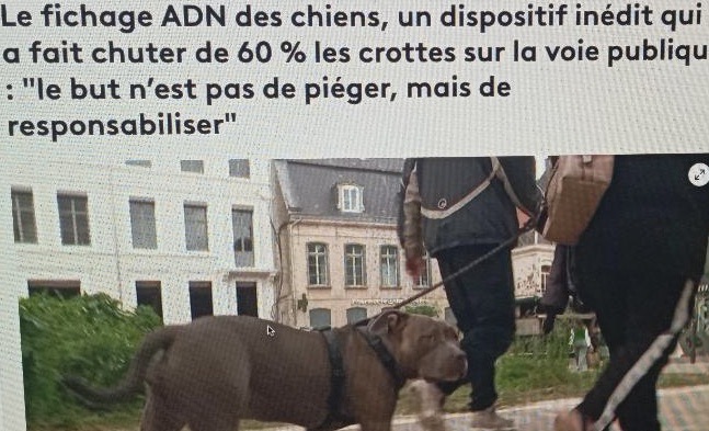 Comme par exemple, contraindre* tous les propriétaires qui promènent leur chien en ville de le doter obligatoirement*, en plus du « puçage », d’une carte d’identité ADN. A partir de cette carte ADN, la suite est évidente. Il suffit à un agent verbalisateur de faire un tout petit prélèvement d’une déjection abandonnée sur le domaine public pour identifier le propriétaire de l’animal. Et de le verbaliser. Une amende pouvant aller jusqu’à 267 euros par exemple à Saint-Omer.