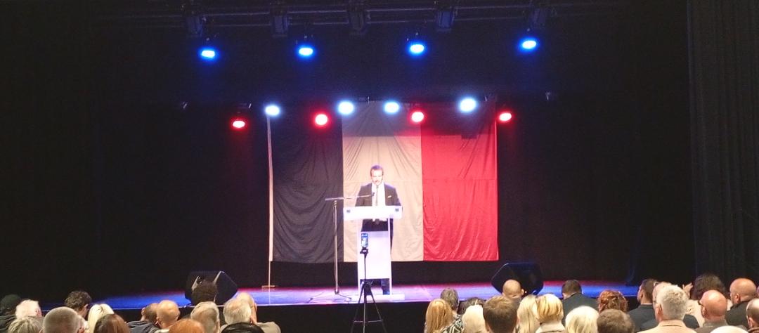 Pendant une petite heure, devant un drapeau tricolore illuminé, A. Golliot a tracé, face à un public attentif et bon enfant, sa vision du Boulogne d’aujourd’hui en opposition avec celle qu’il envisage pour des lendemains plus enchanteurs.
