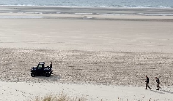 D’ailleurs, au loin, du côté d’Hardelot, on devine un de ces petits engins à quatre roues motrices qui revient vers Equihen. Il va faire demi-tour avant d’arriver à la hauteur des marcheurs et s’arrête un peu plus loin pour changer de pilote. Le temps pour les marcheurs de découvrir que les deux hommes sont jeunes. Et de se dire qu’ils ont bien de la chance de pouvoir jouer avec un quatre-quatre sur cette plage presque déserte. Ce n'est pas donné ce genre d'engin.